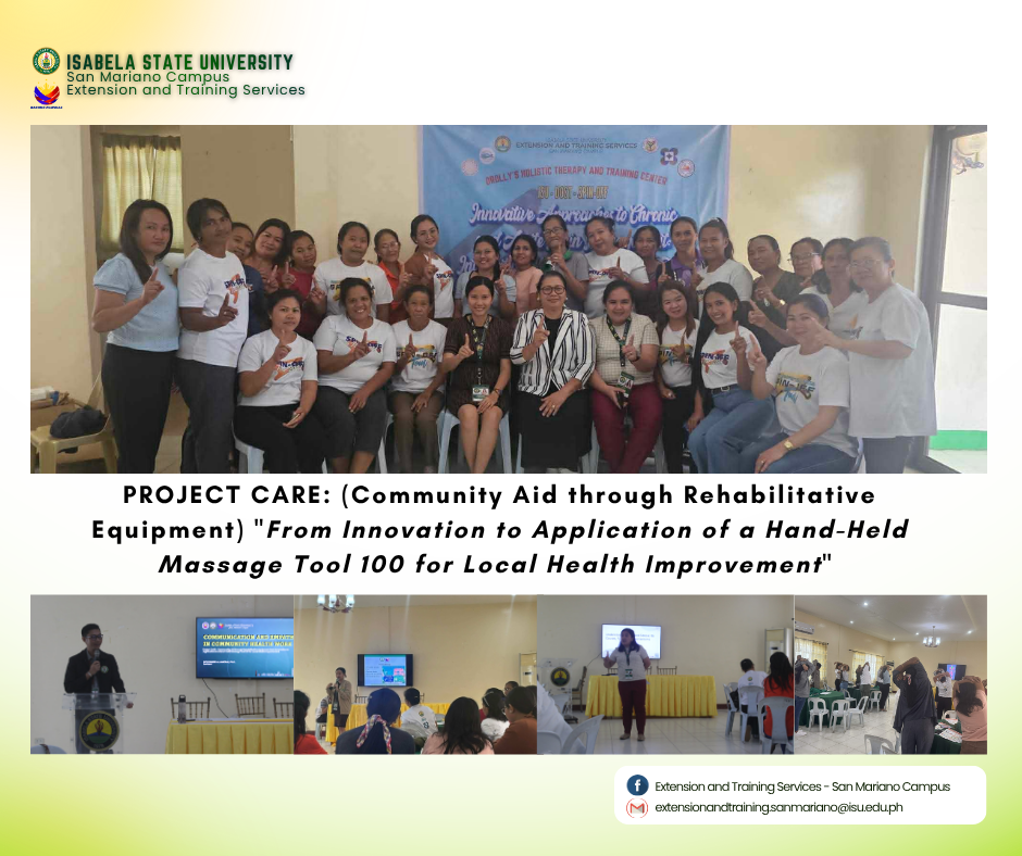 Extension Project CARE: Empowering San Mariano’s Health Heroes Through Innovation and Wellness In a significant stride toward localized healthcare innovation, Isabela State University (ISU) San Mariano Campus hosted a specialized extension activity under Project CARE (Community Aid through Rehabilitative Equipment) last March 19, 2026. Held at the campus Function Room, the event titled “From Innovation continue reading : Extension Project CARE: Empowering San Mariano’s Health Heroes Through Innovation and Wellness
