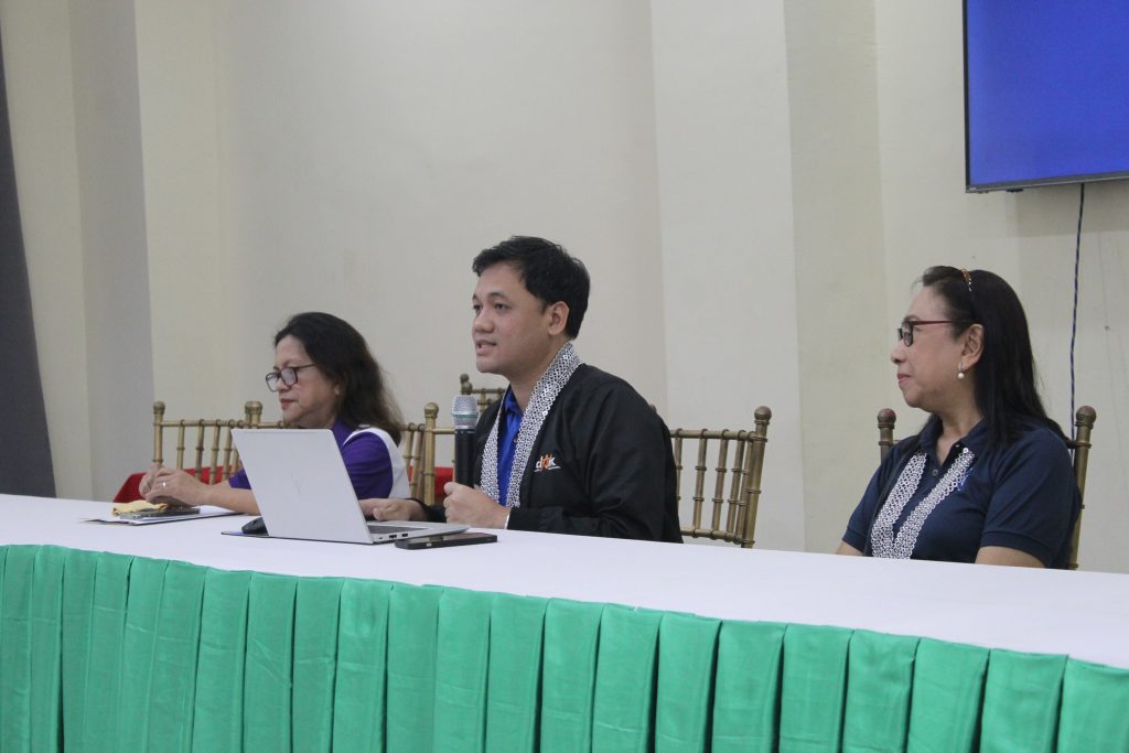 In frame from L-R. Dr. Ruby B. Dimas, Campus Administrator; Mr. Erwin Quinto, TUV-SUD Lead Auditor; and Ms. Eunice Sol Diamante, TUV-SUD Co-Auditor, during the presentation of surveillance results.